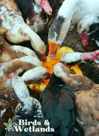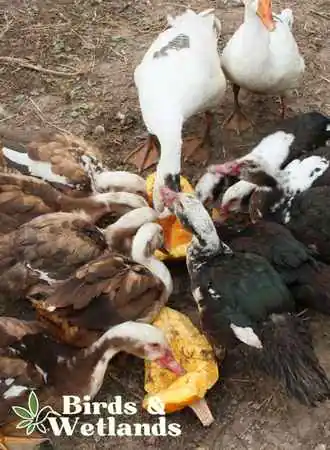 The pumpkin is a popular treat for geese, ducks and chickens, but it is not the only food that can be mixed in with this traditional favorite. These birds also enjoy leafy greens such as spinach and kale, and they can provide a healthy dose of vitamins and minerals.