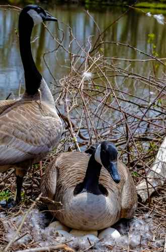 geese sitting on eggs