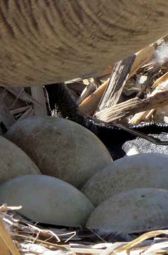 geese covering eggs