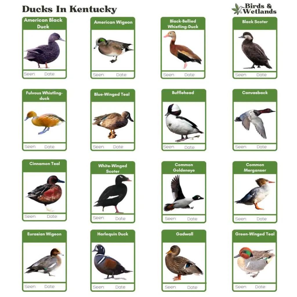 There are 31 different types of ducks sighted in the state of Kentucky. These ducks include: