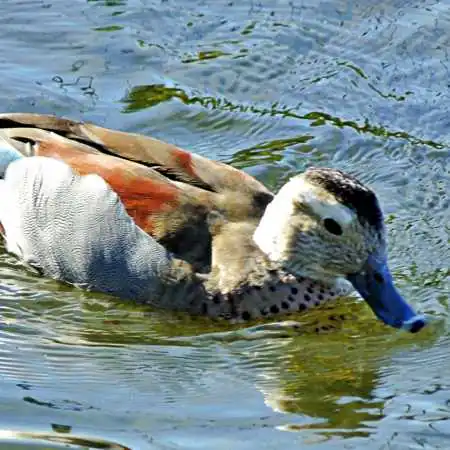 The blue-billed teal (Spatula hottentota) is a dabbling duck native to eastern and southern Africa, from Sudan and Ethiopia to South Africa and Namibia.