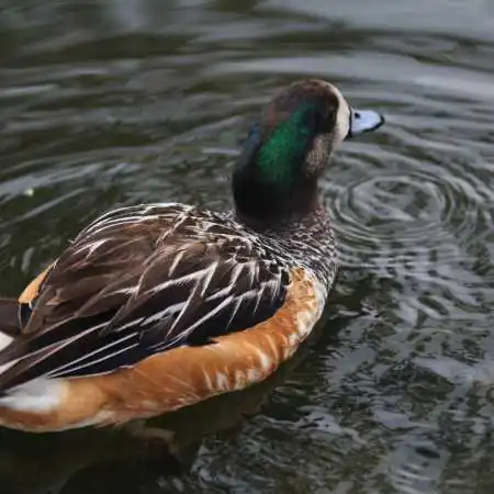 The American wigeon (Anas Americana) is a dabbling duck native to North America. It is easily recognizable by its unique head shape, which features a distinctive green, white and blue-gray feather pattern. This species is a popular game bird hunted extensively during the winter months in North America.