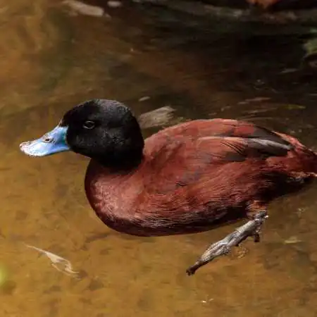 The Andean duck (Oxyura ferruginea) is a bird native to the Andean Mountains and part of the stiff-tailed ducks. It has a distinctively peaked head, a short thick neck and a rich chestnut body.