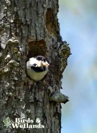 Yes, you can attract chickadees to your backyard with safe nesting sites. Chickadees are cavity-nesting birds that find holes in dead trees. Some chickadees even build nests inside old woodpecker holes.