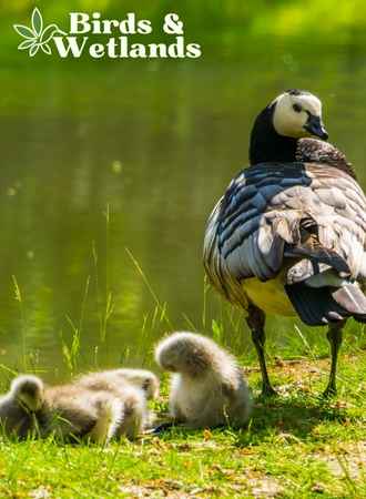 While the female incubates the eggs, the male stands guard nearby. The breeding pair will provide protection and food to their young. A few adults with their goslings will form groups called crèches.